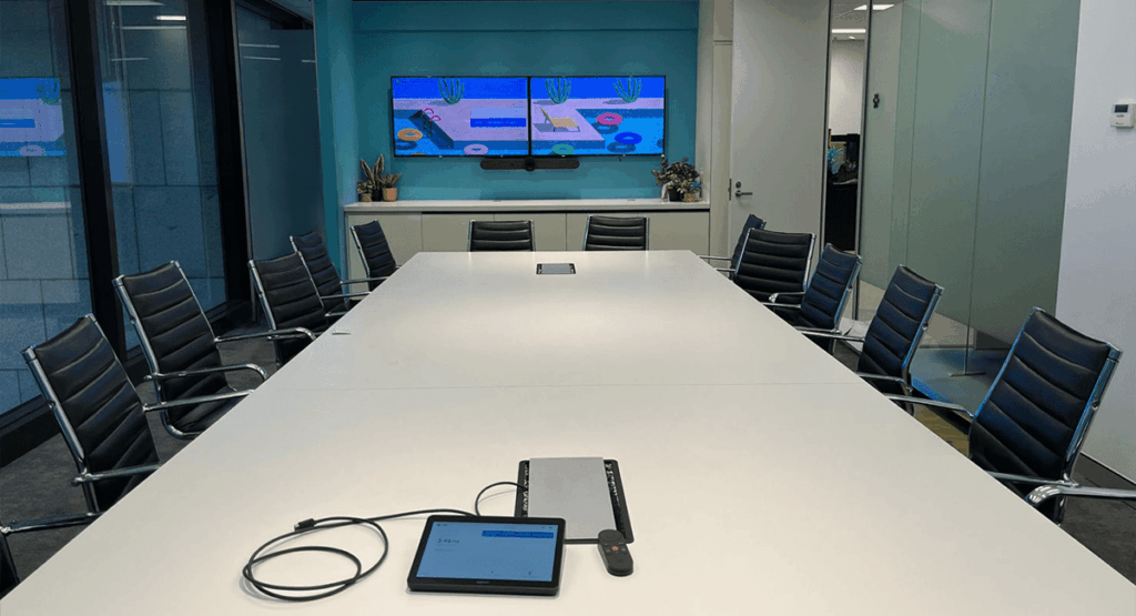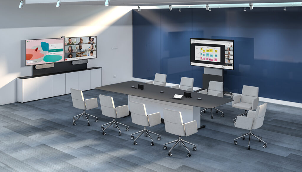 For Google Meet installations, smaller rooms may utilize compact video bars, while larger spaces require more complex systems like rally mic pods. These setups can easily be customized based on the room’s dimensions and meeting needs.